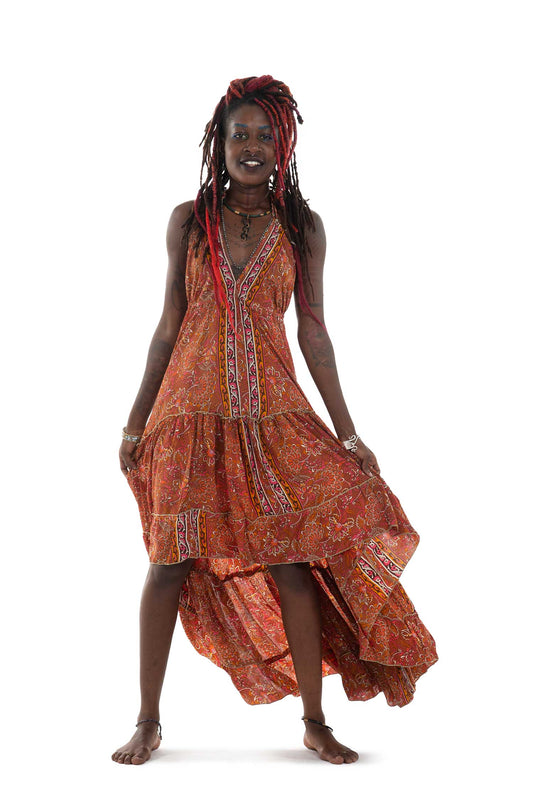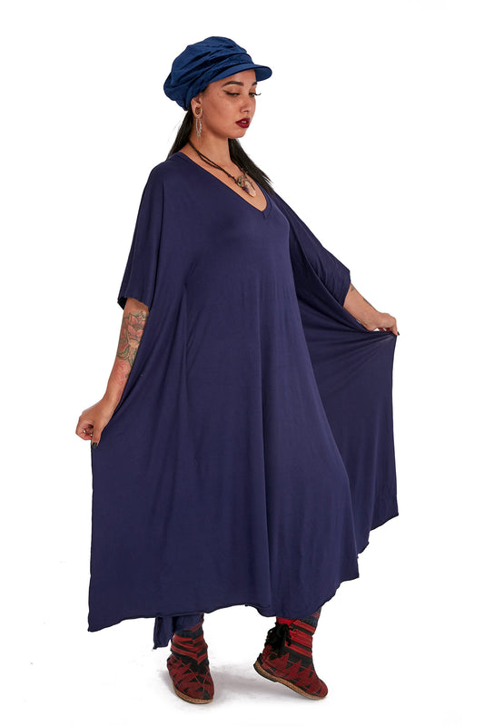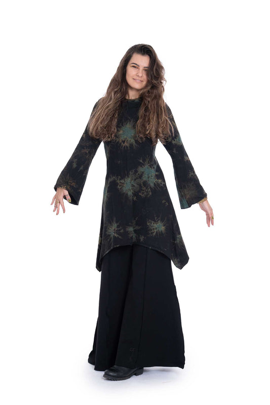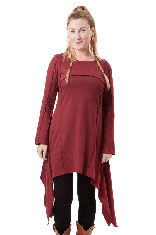Long Sleeve Winter Leaf Dress With Hooded Cowl Neck