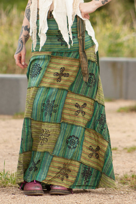 Long Earthy Patchwork Skirt