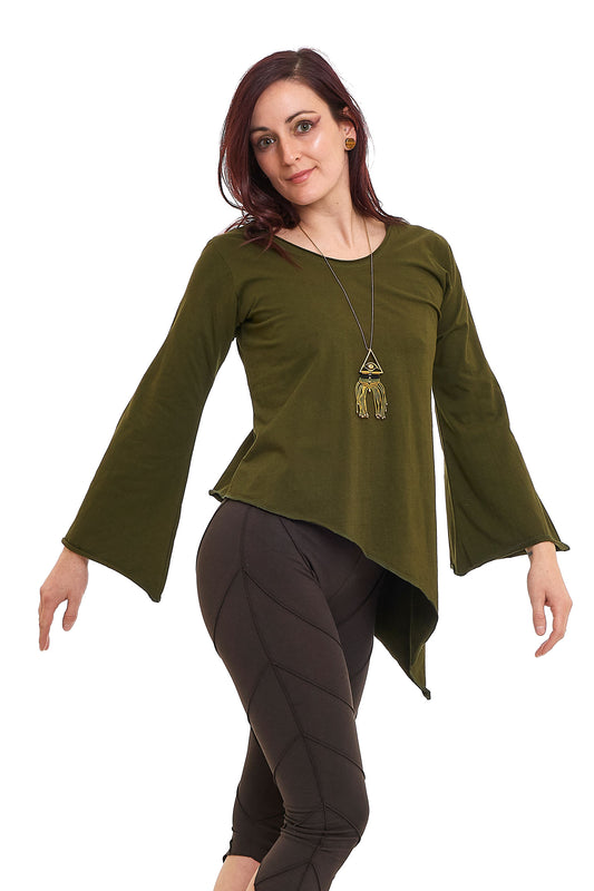 Ladies Assym Pixie Top, Long Sleeve Boho Top