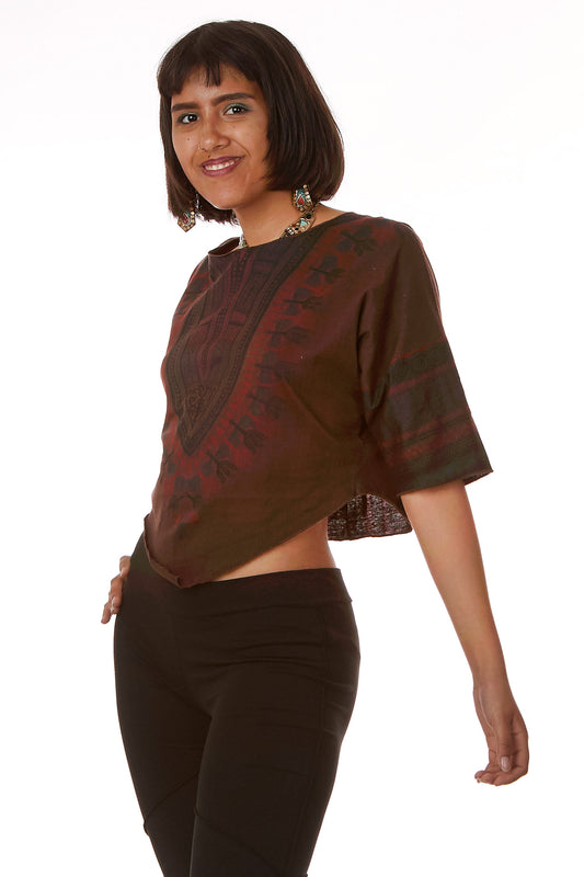 African Batwing Crop Top, Hippy Cropped Dashiki Teeshirt