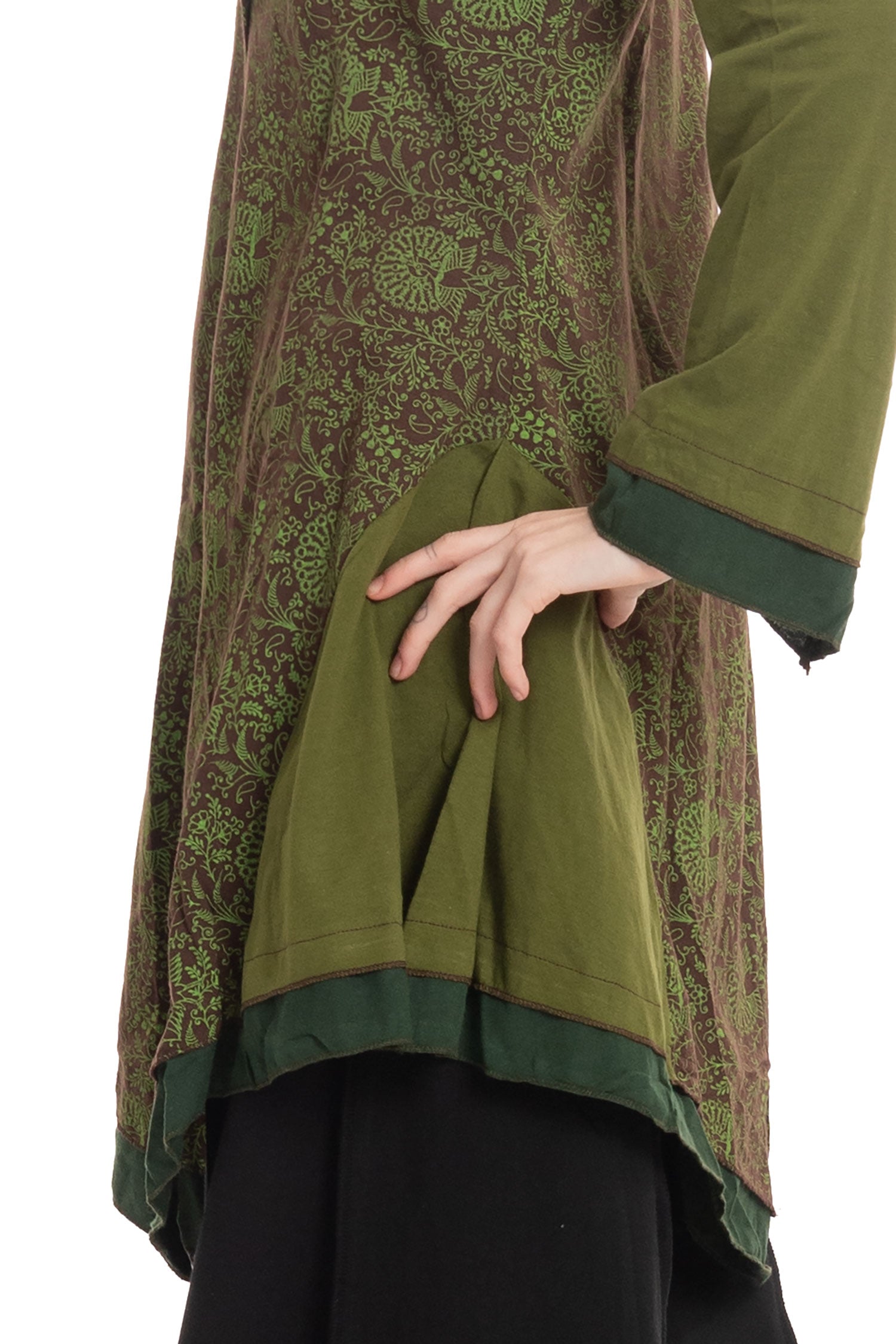 It's elegantly cut with a pixie-style hem and a huge wizard hood.