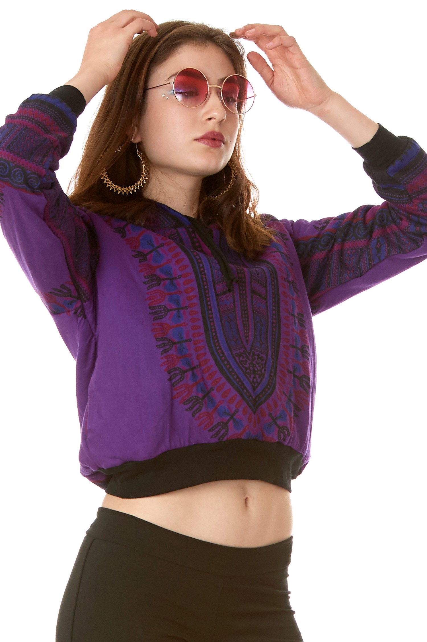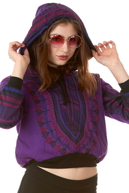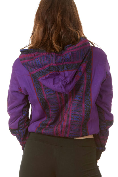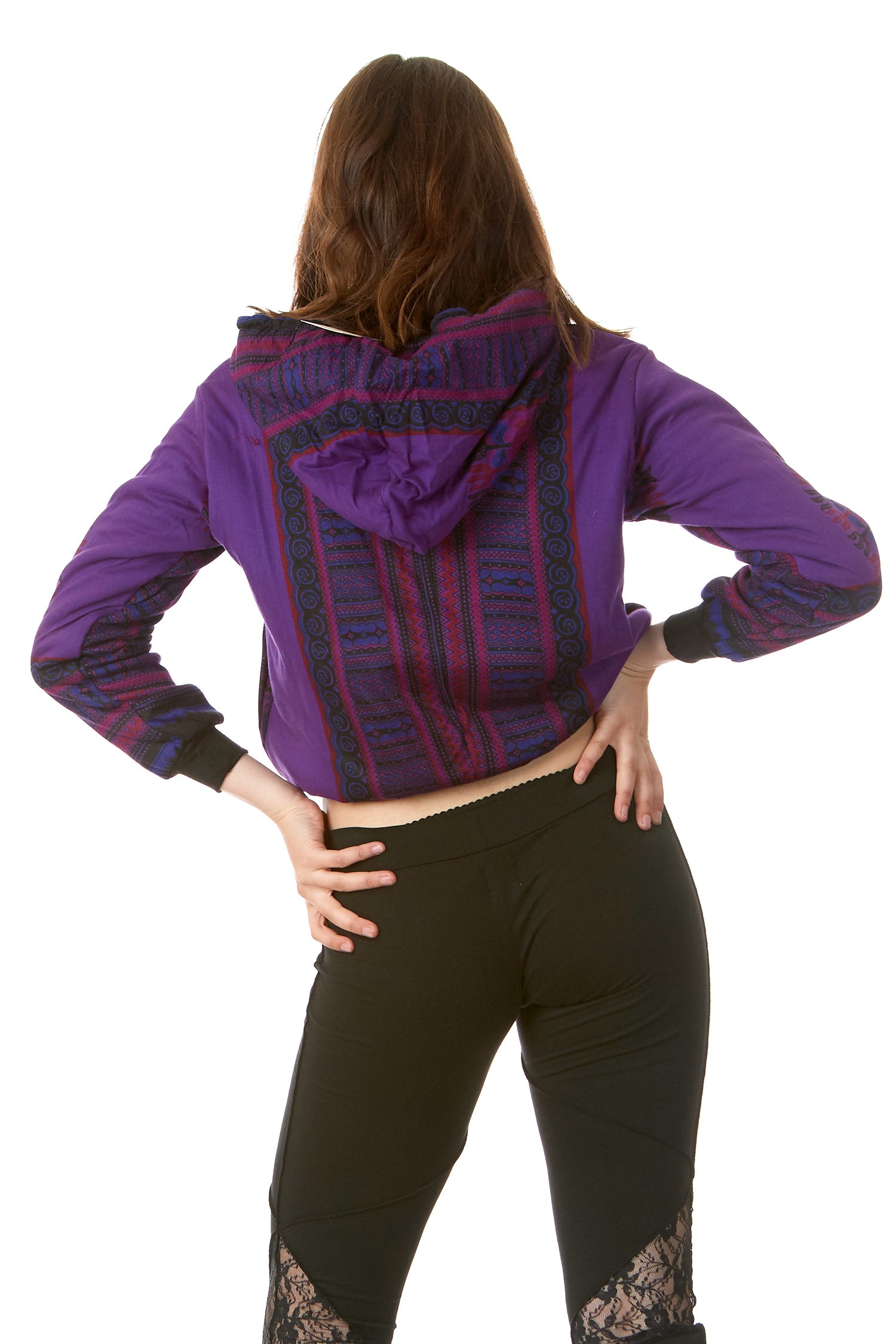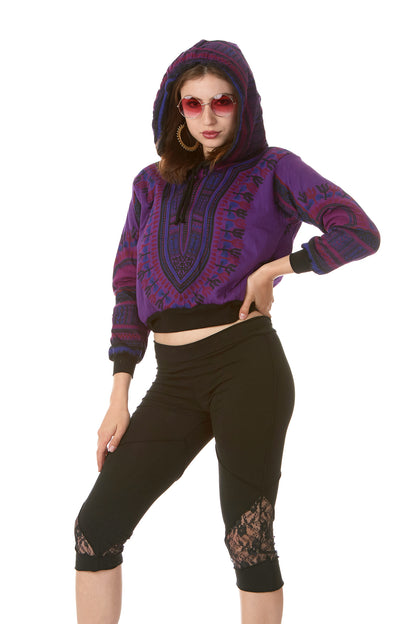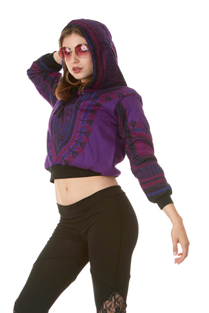 This fab little puffy cropped hoodie is made from Dashiki cotton that's been overdyed in teal and lined with warm black fleece.