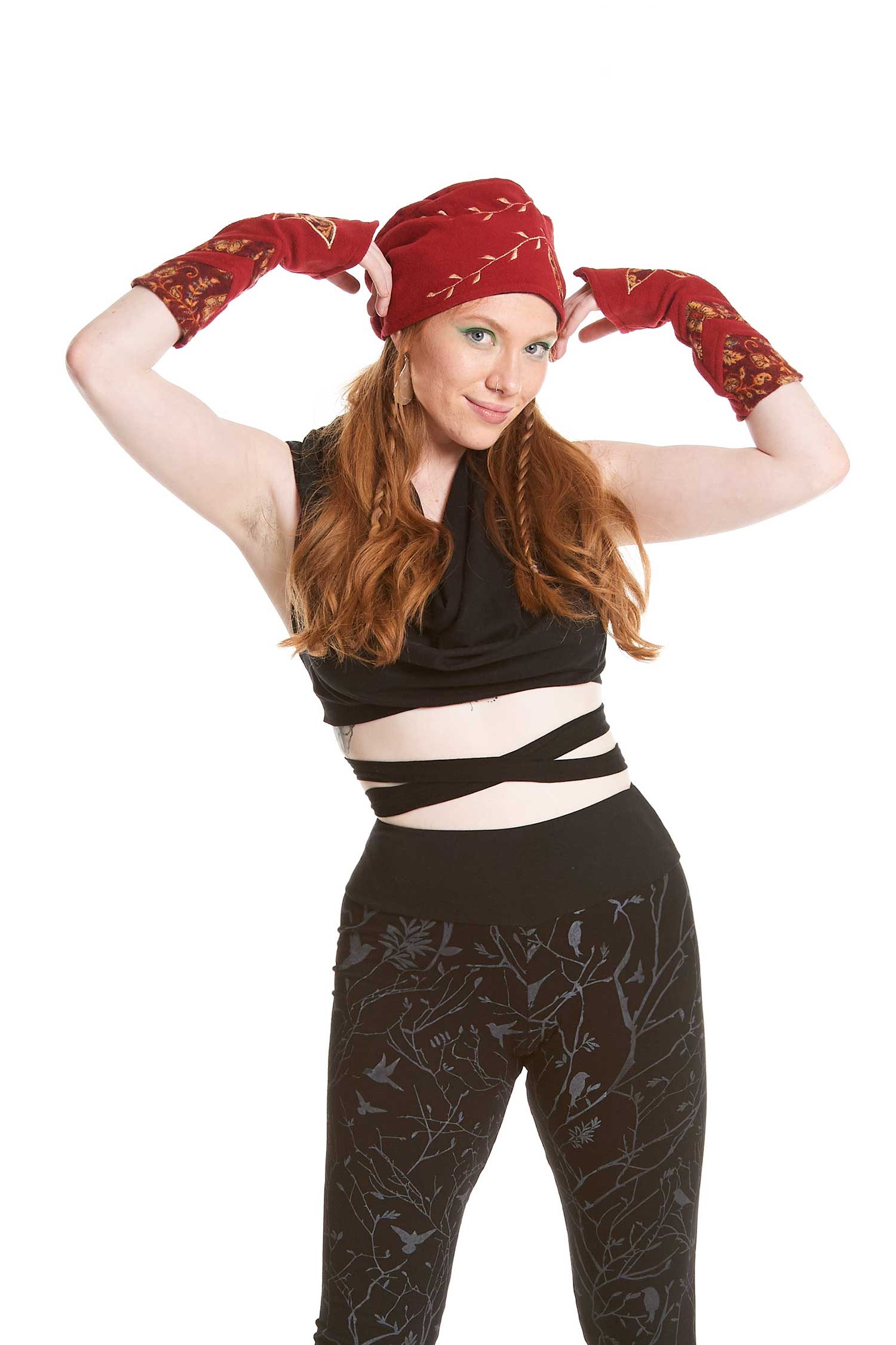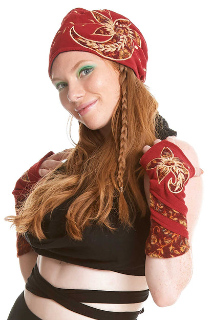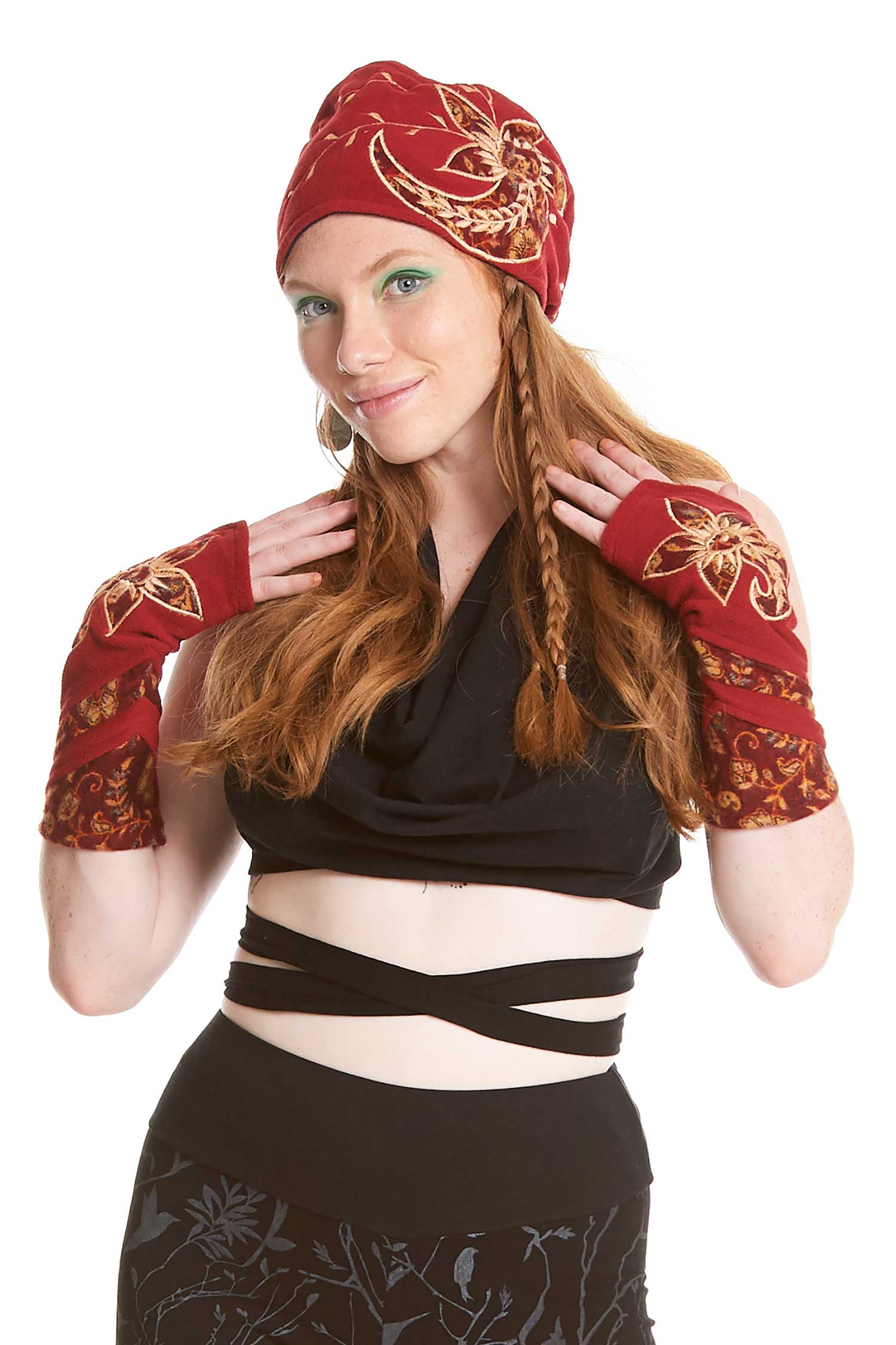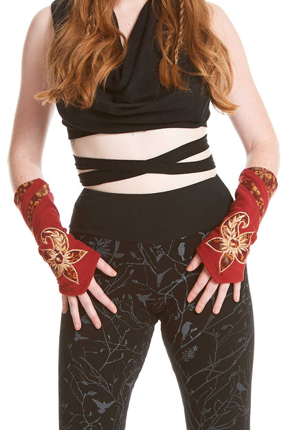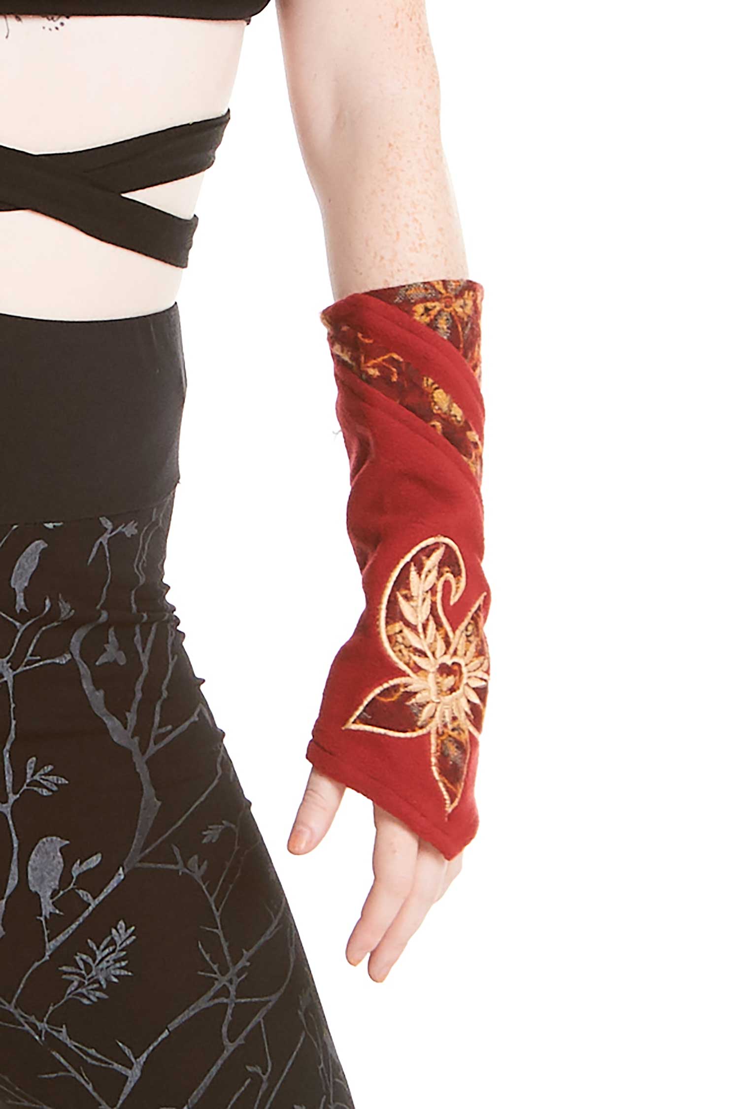 These cosy pixie arm warmers are decorated with flower applique. They are perfect for layering during cold days or adding a touch of personality to any outfit.