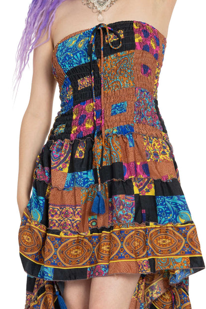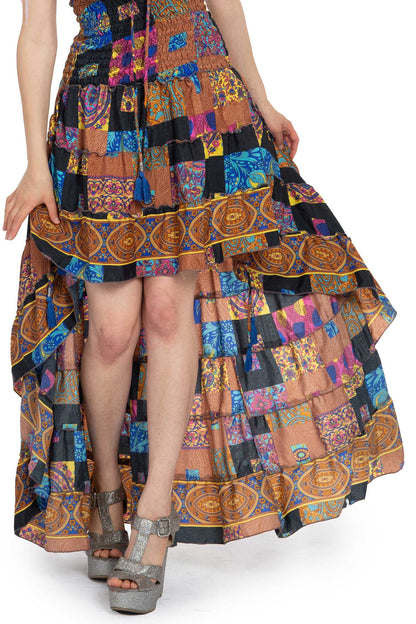 Skirt section has tassled adjustable ties that you can use to hitch up the skirt.