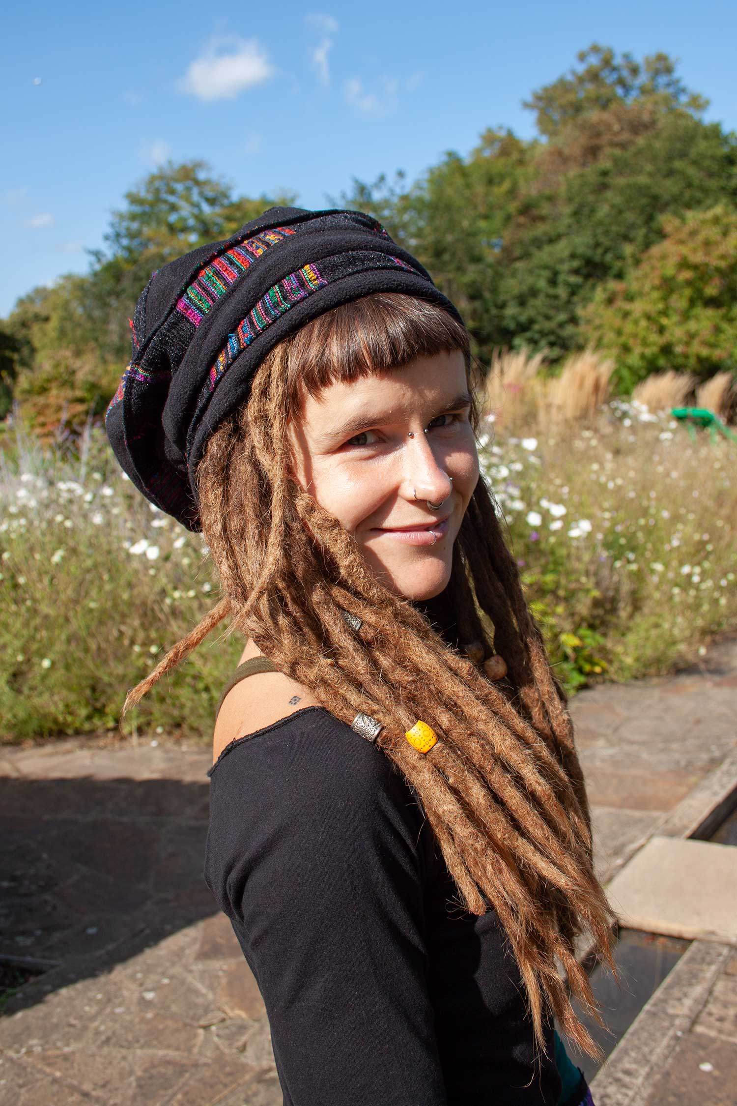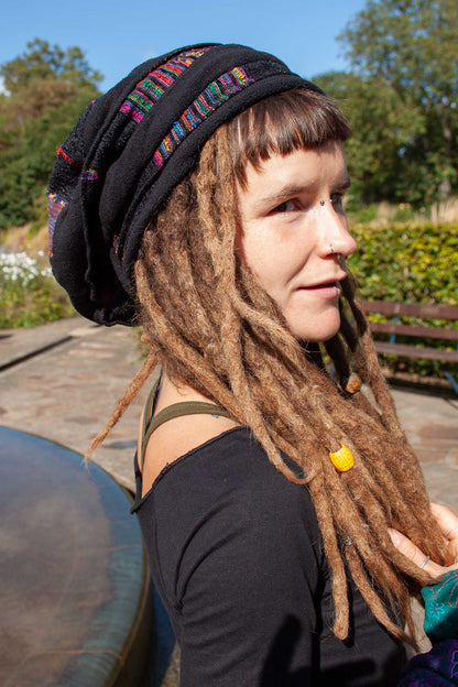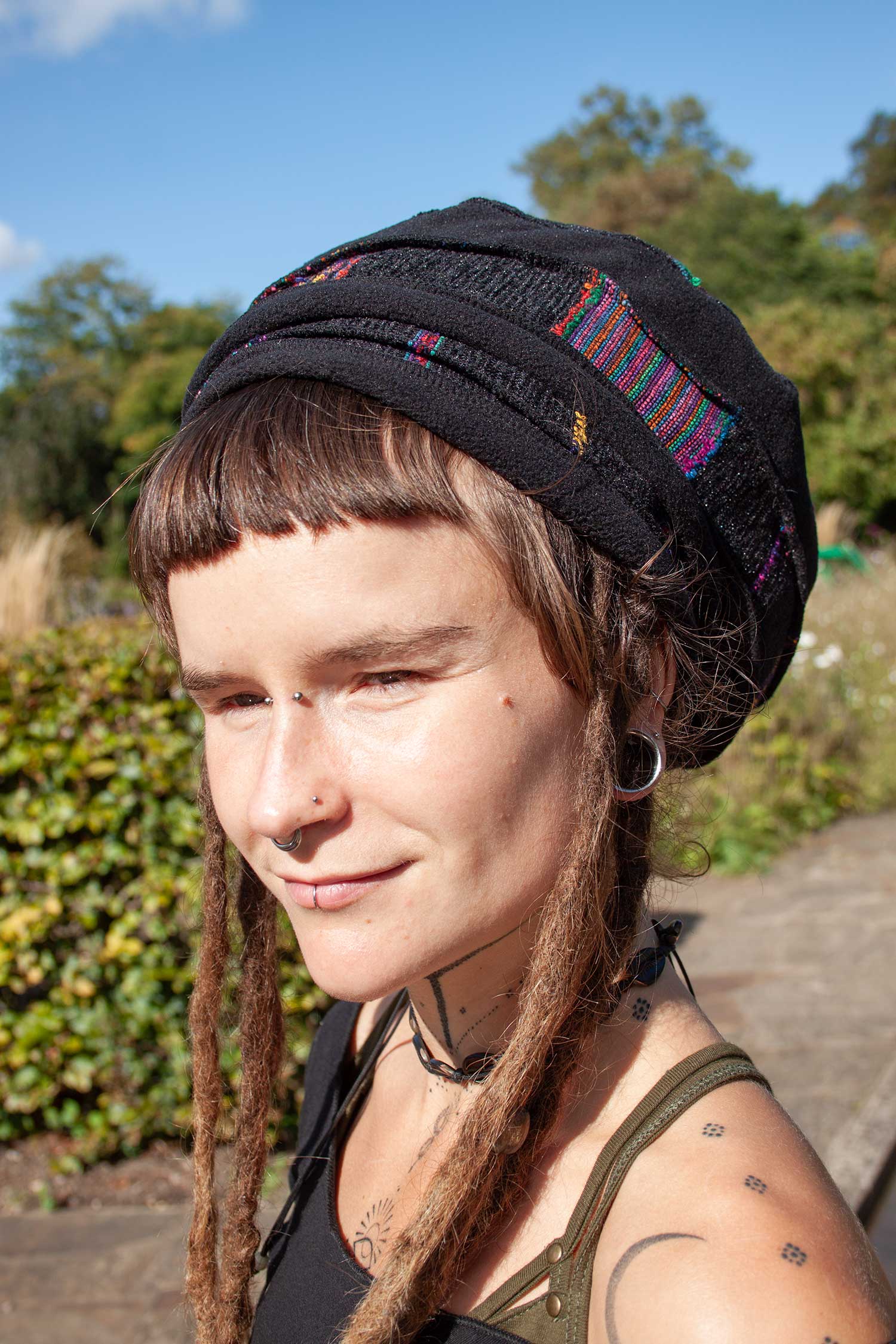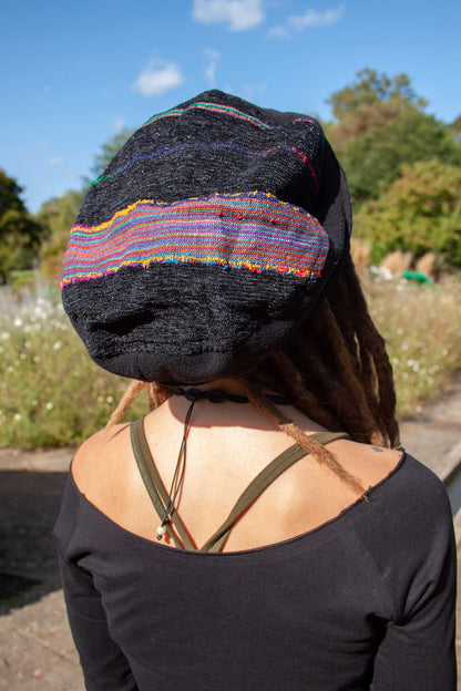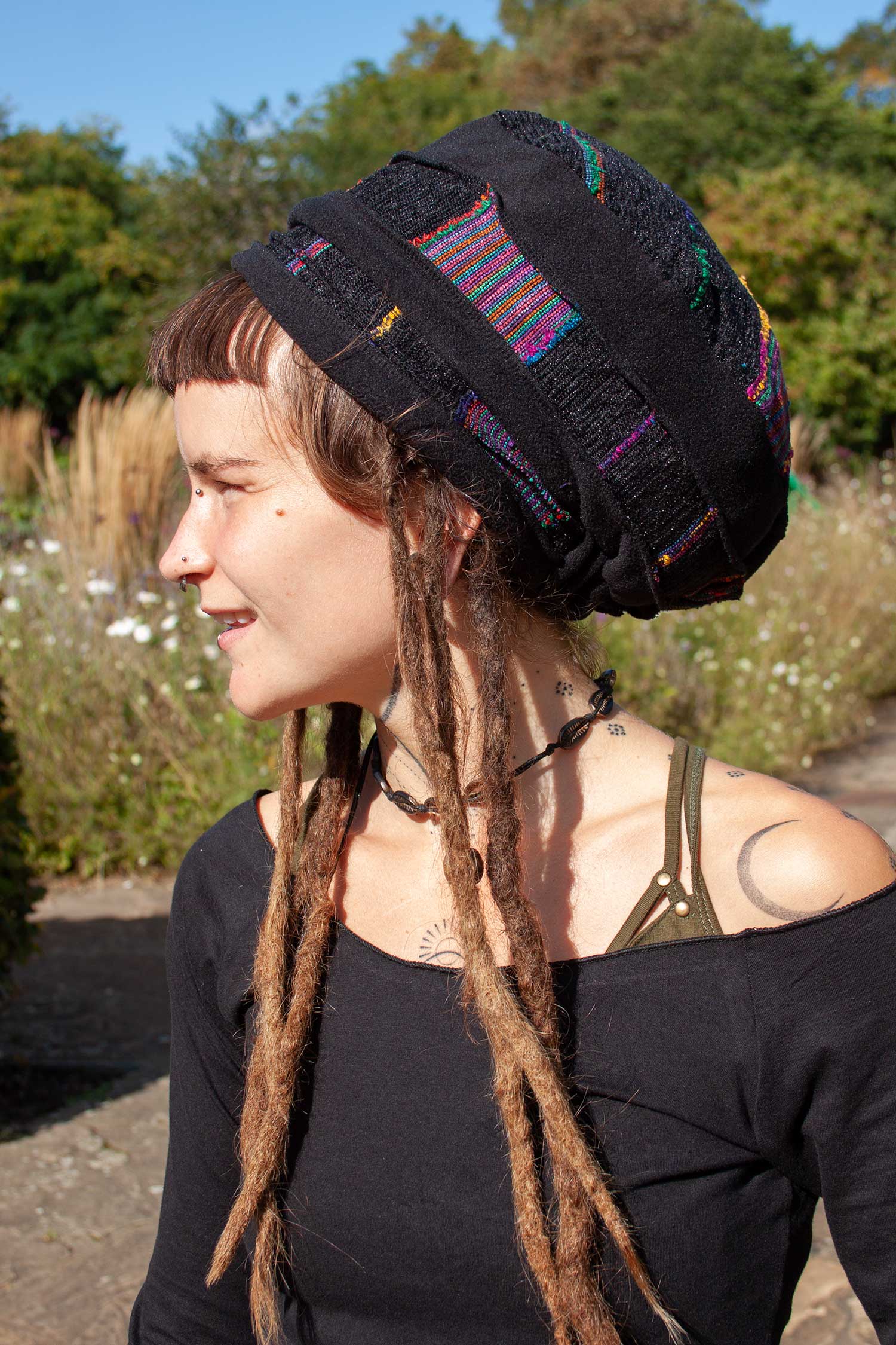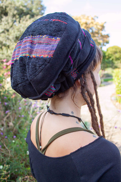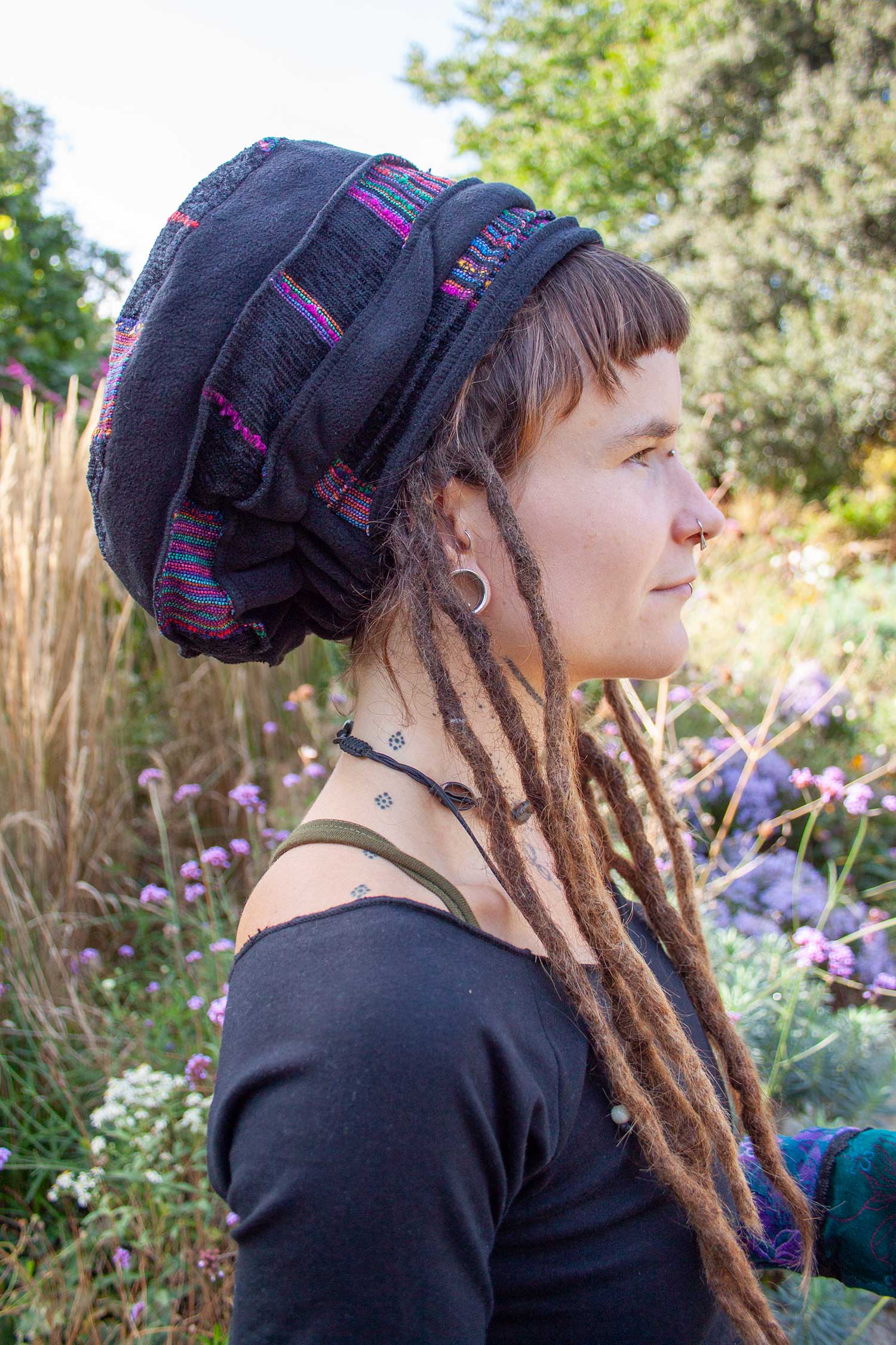 A great slouchy hat to complete any look made of soft fleece and woven chenille fibre.