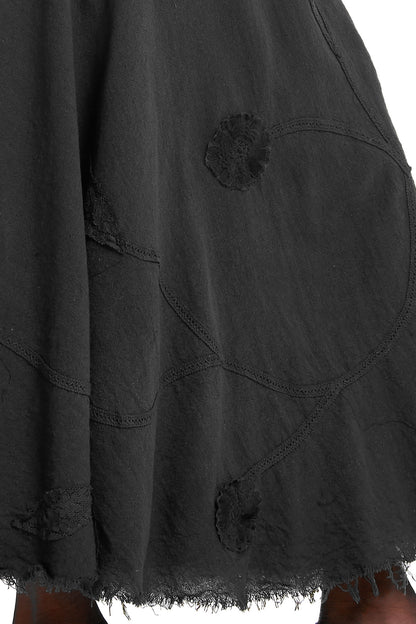 This enchanting piece is crafted from soft, breathable jute fabric and adorned with playful flower appliqués and braided vines. It brings a touch of whimsical charm to your wardrobe.