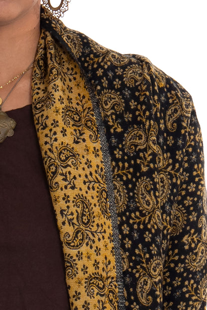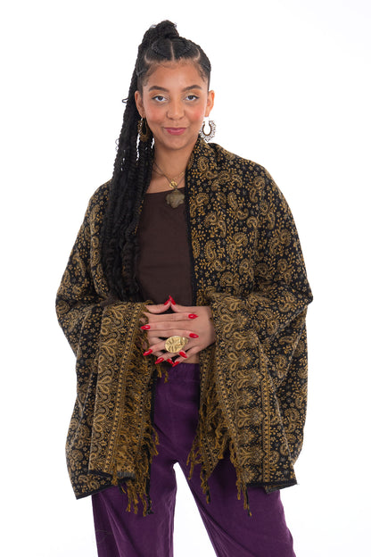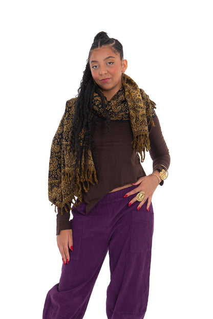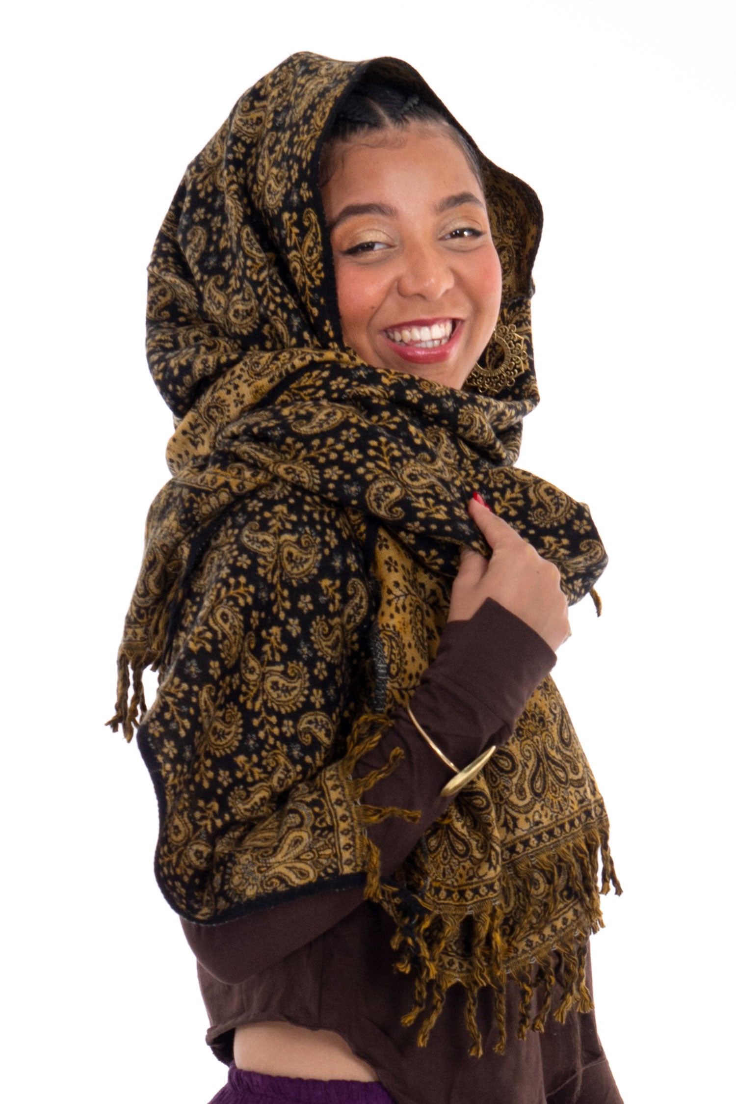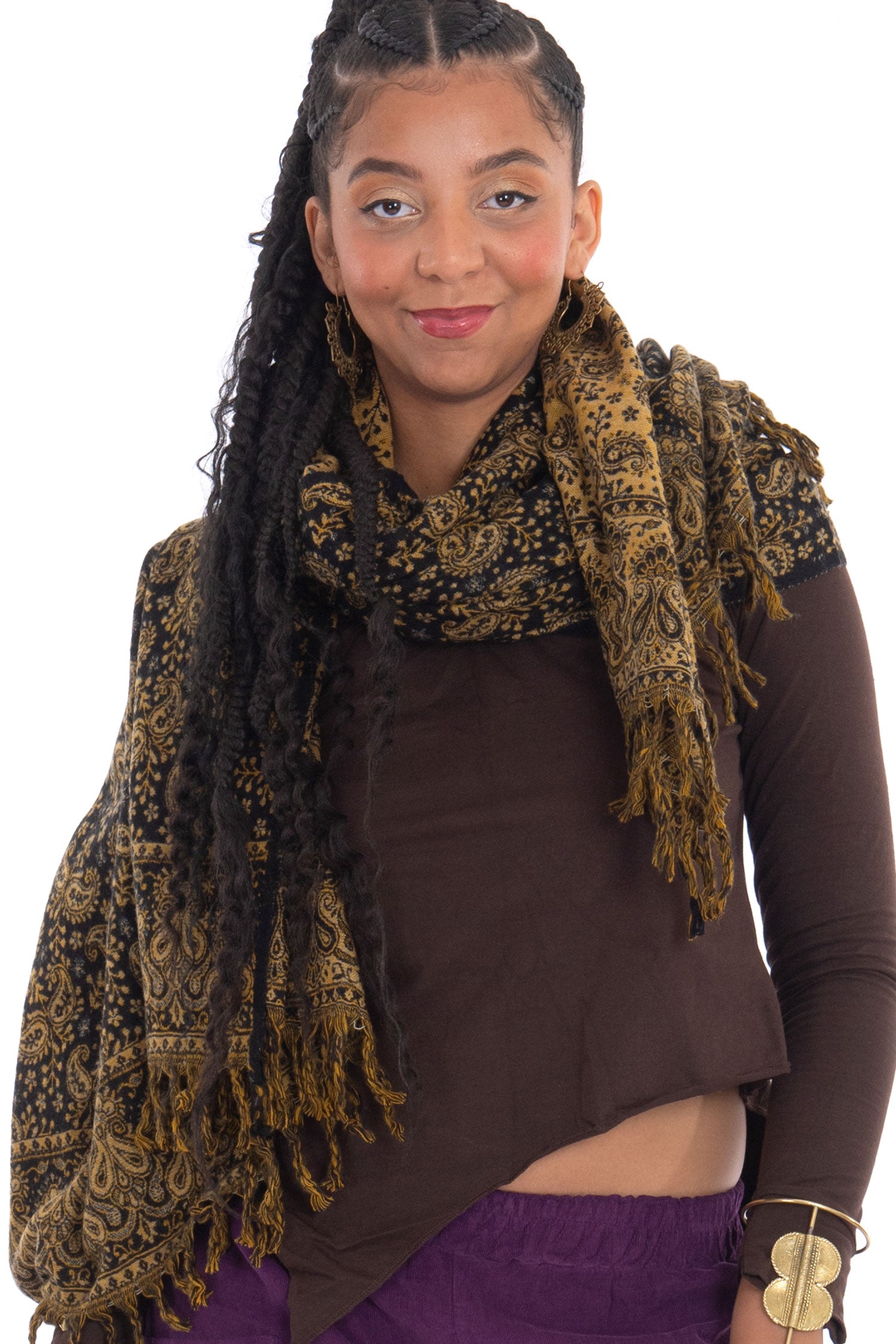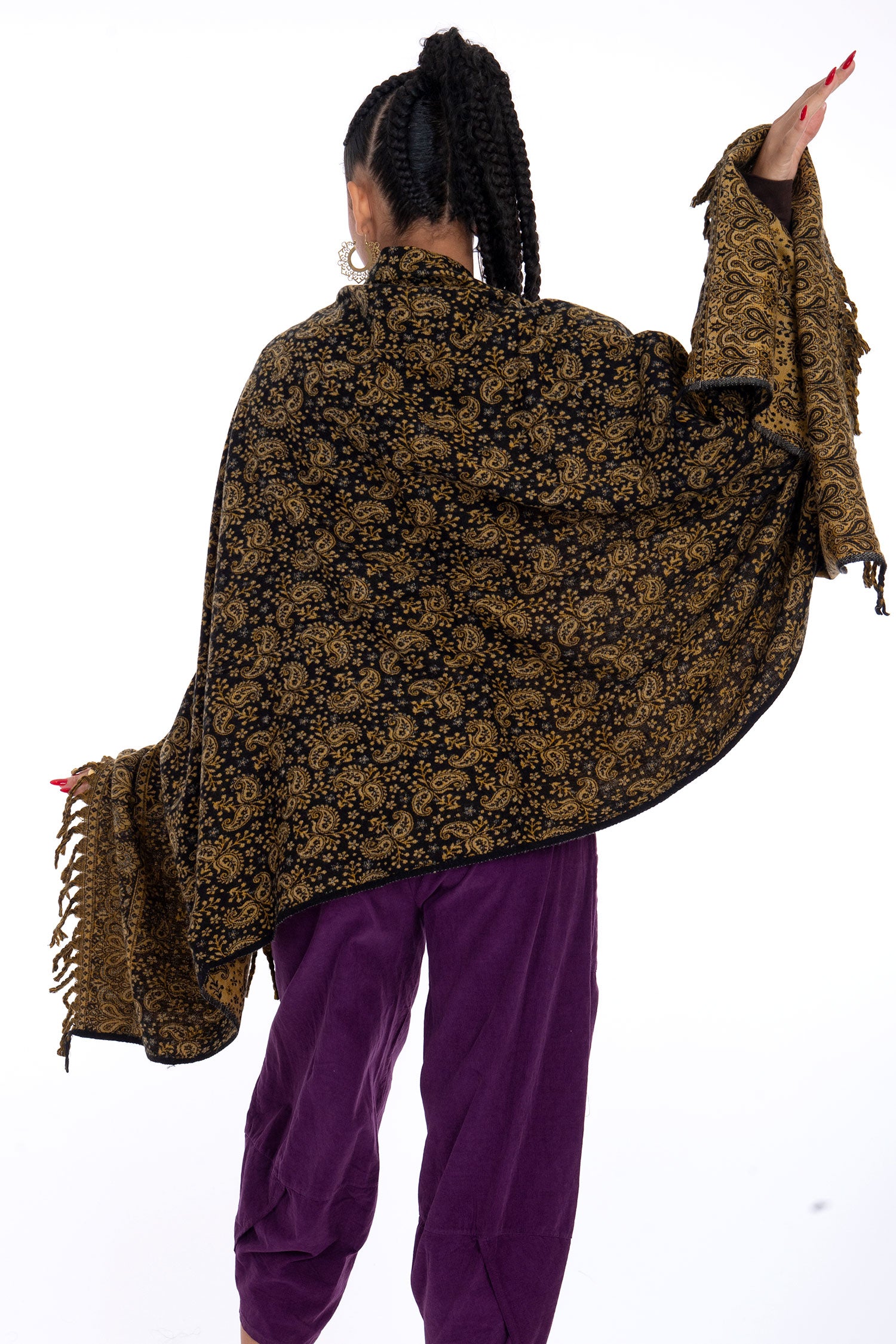 A lovely long, wide shawl with a paisley design which can also be worn as a wrap or oversized scarf.