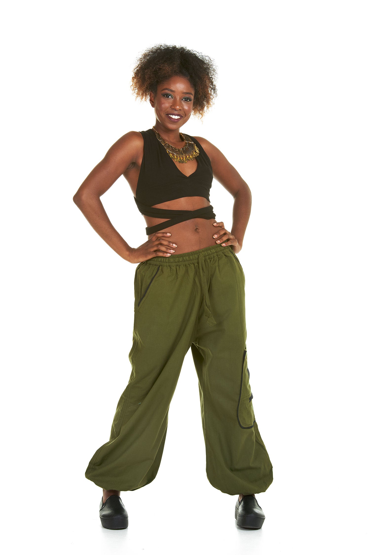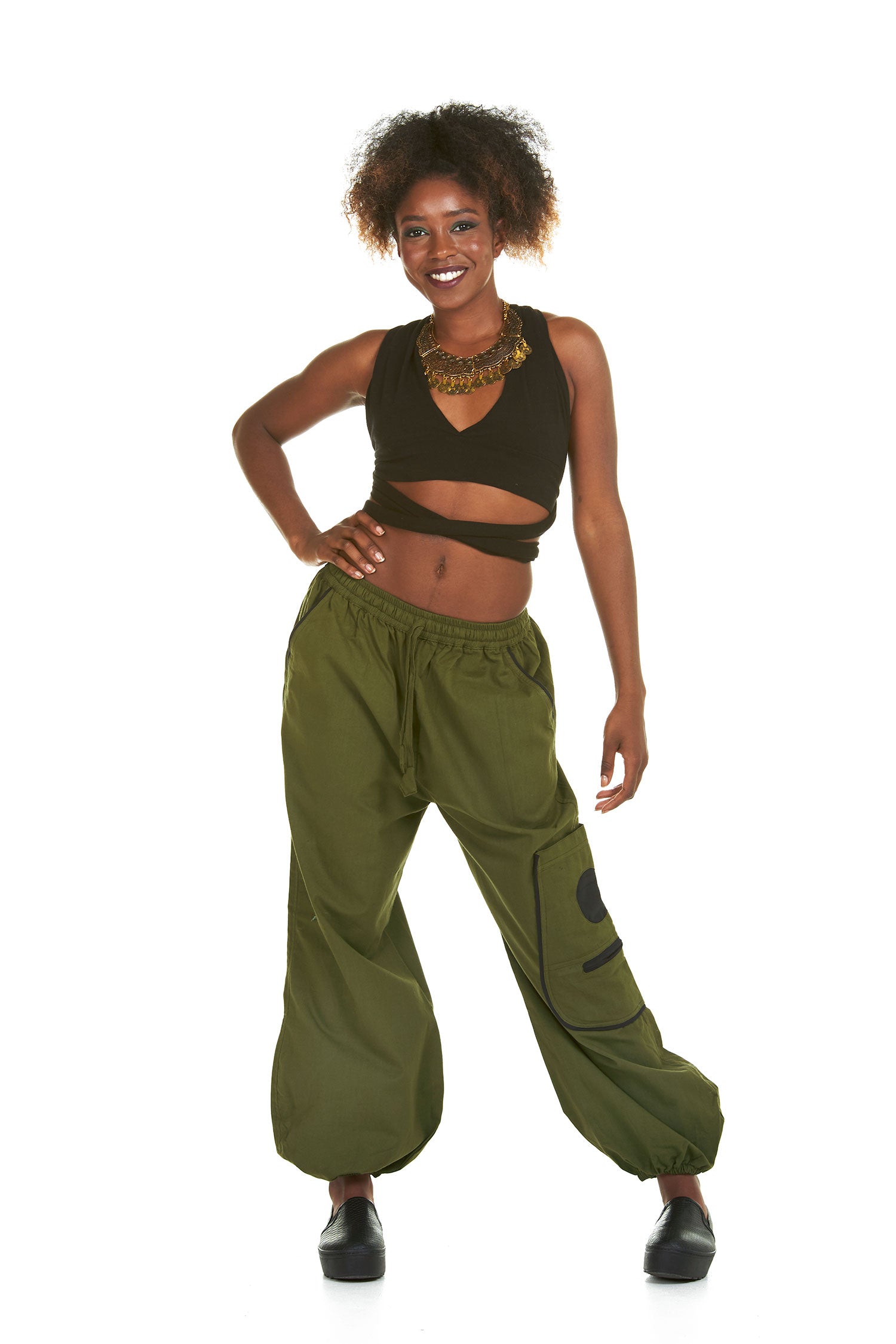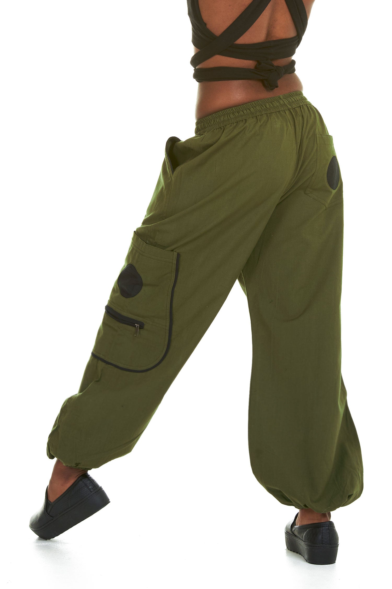 These army green beauties feature a cozy elasticated waist and feet, ensuring you can move freely with comfort.